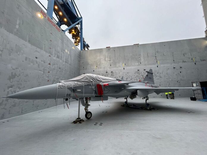 A décima aeronave F-39 Gripen adquirida pela Força Aérea Brasileira (FAB) chega ao Brasil por meio do Porto de Navegantes nesta quinta-feira (12), em operação especial de transporte terrestre até o aeroporto da cidade.