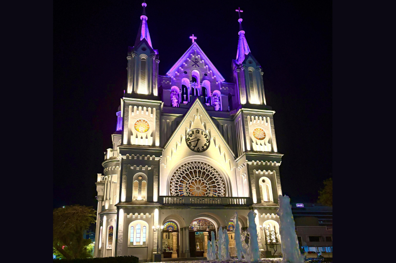 A iluminação lilás começou a ser implantada pela Igreja Matriz do Santíssimo Sacramento. – Foto: Divulgação