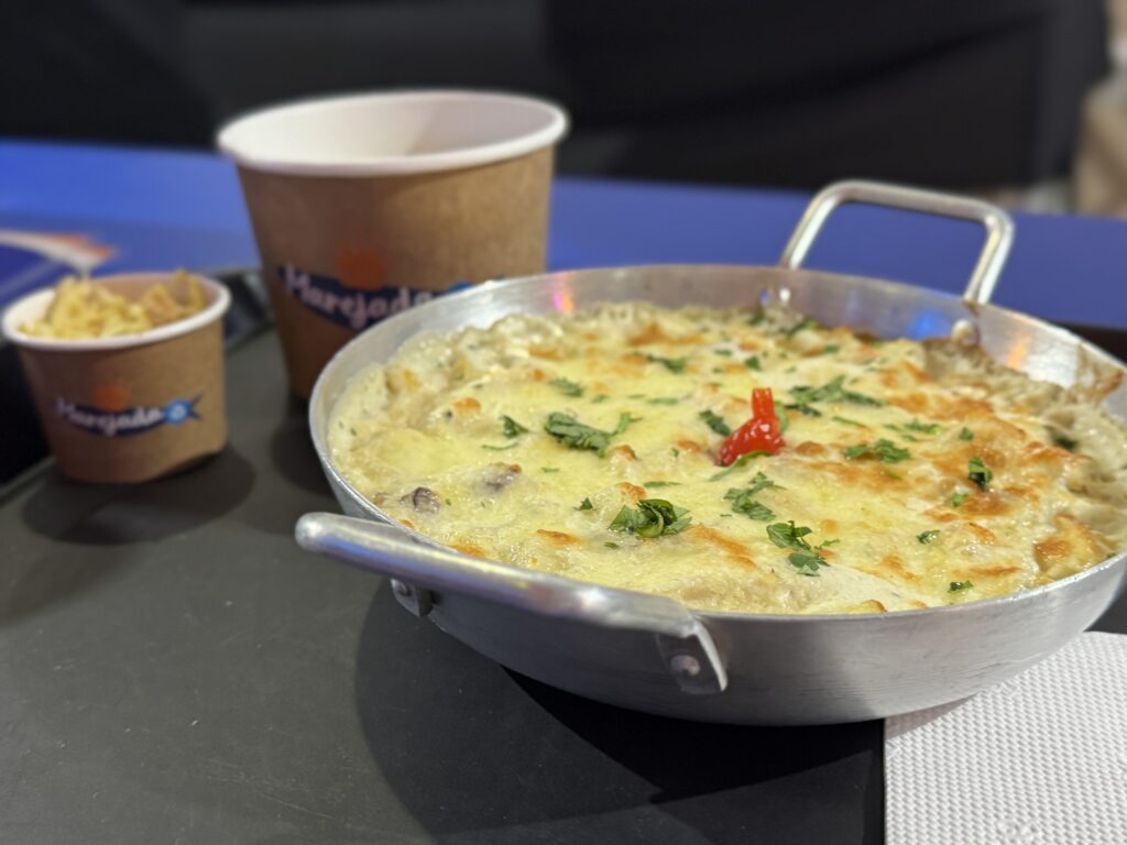O resultado é um bacalhau cremoso, com sabor delicado e textura marcante, preparado com lascas do peixe, natas e um gratinado dourado que conquista o público logo na primeira garfada.