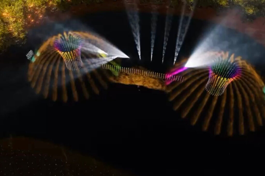 Com duração aproximada de 15 minutos, o espetáculo combina águas dançantes, iluminação cênica, projeções de imagens em cortina d’água e efeitos especiais, incluindo fogo, criando um cenário visual impactante sobre o espelho d’água. A estrutura foi especialmente montada para transformar a Beira-Rio em um dos pontos mais emocionantes da programação natalina da cidade.