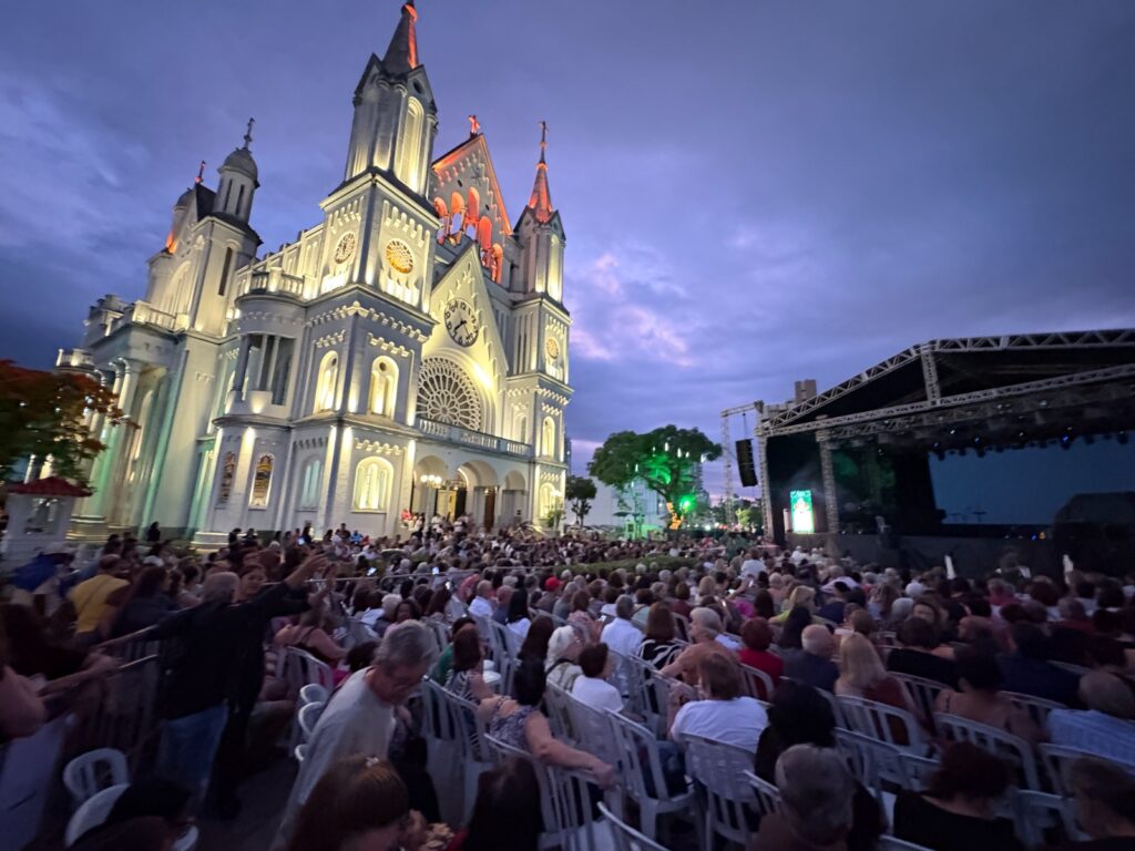 A apresentação do Padre Fábio de Melo, realizada na noite desta terça-feira (16), reuniu cerca de 10 mil pessoas no Largo da Igreja Matriz Santíssimo Sacramento, em Itajaí. O show integrou a programação do Natal Encanto e foi marcado por momentos de emoção, fé e reflexão, além de contar com projeção mapeada na fachada da igreja.