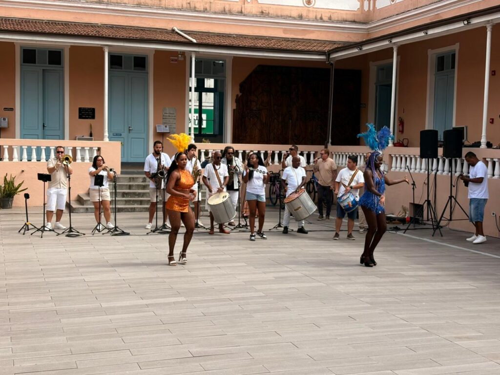 Praça Vidal Ramos recebe apresentações de samba, passistas e a tradicional Bateria Papa-Siri. – Foto: Secom Itajaí/Reprodução