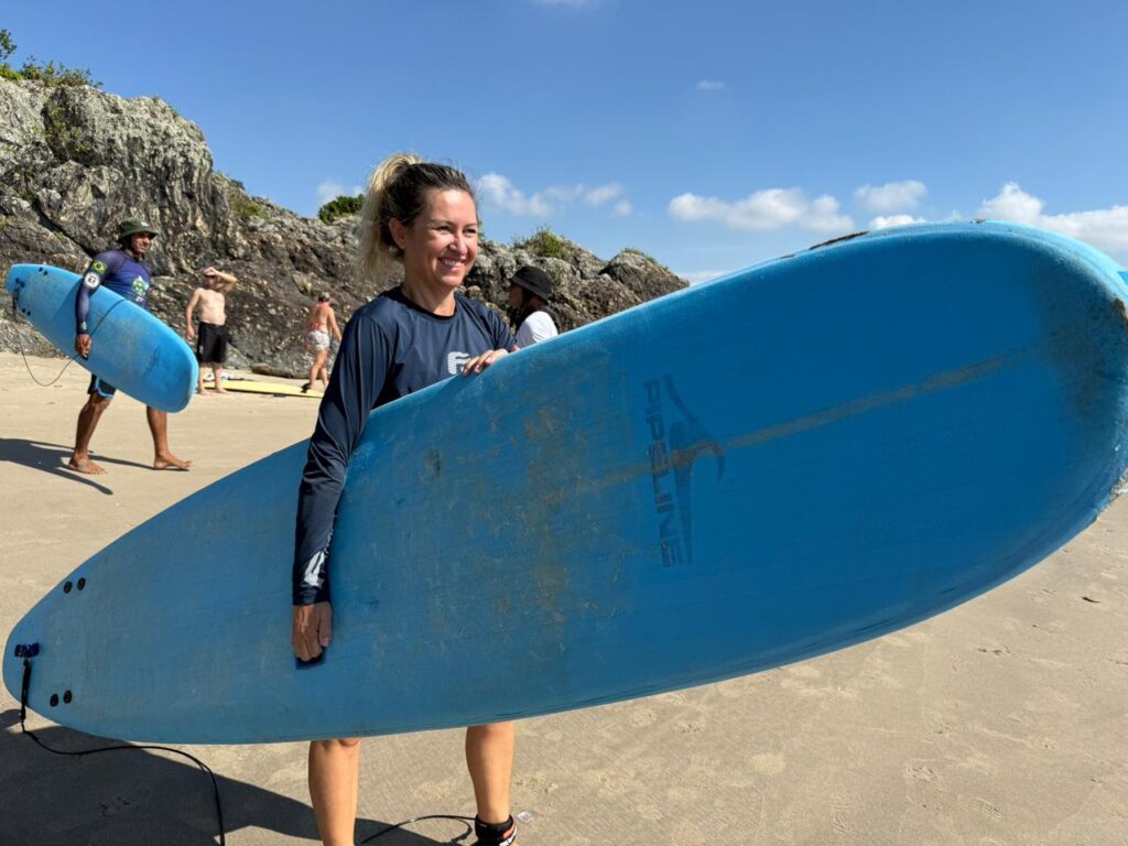 Servidores que atuam no atendimento à terceira idade em Itajaí participaram, na manhã de segunda-feira (2), de uma capacitação diferente: uma aula prática de surf. A atividade foi realizada como parte de um estudo da Secretaria de Assistência Social e Cidadania de Itajaí para avaliar a implantação de aulas gratuitas do esporte voltadas aos idosos atendidos pelos serviços municipais.